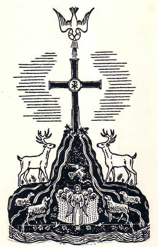 | BACK COVER DESIGN COURTESY OF CARROLL E. WHITEMORE AND WILLIAM DUNCAN This is a symbol of the Church, found in a Church in Rome. From the Holy Spirit, symbolized by the dove, salvation comes through Christ’s sacrificial death on the Cross into the Church, which is shown as a rock. From this rock flow the rivers of salvation which drink the faithful, represented by the sheep and stags. Beneath the rock is a symbol of Paradise where the faithful are enjoying their eternal reward guarded by an angel. The Urhobo faithful are among those who are in Paradise. |