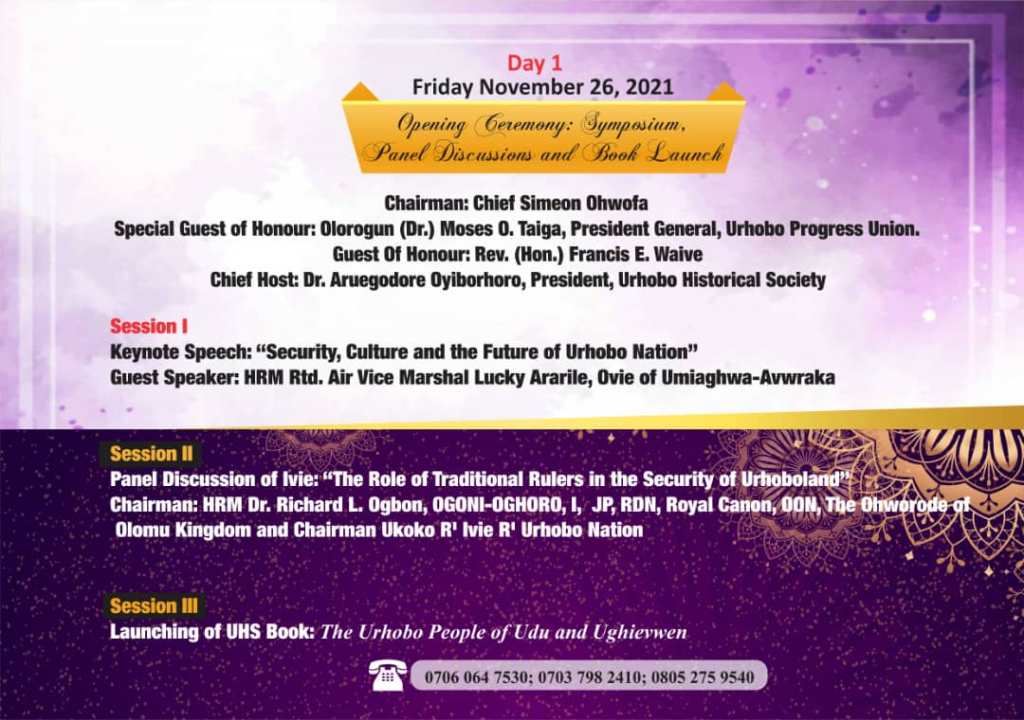 4. Issuing position papers and offering advice on policies and critical issues affecting the Urhobo people. Examples include Towards Formulating an Urhobo Agenda (2005) and “Why Urhobo Historical Society is Opposed to Delta State Government’s Attempt to Control Urhobo Culture and Create “Kingdoms” in Urhoboland. (2008).
