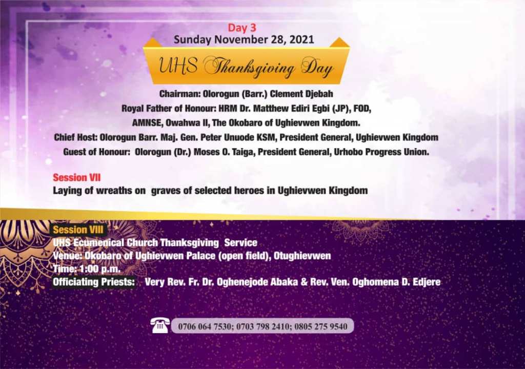| Twelfth | November 26-28, 2021 | Urhobo Cultural Centre, Uvwiamughe, Otor-Udu & Otughievwen, Delta State, Nigeria |