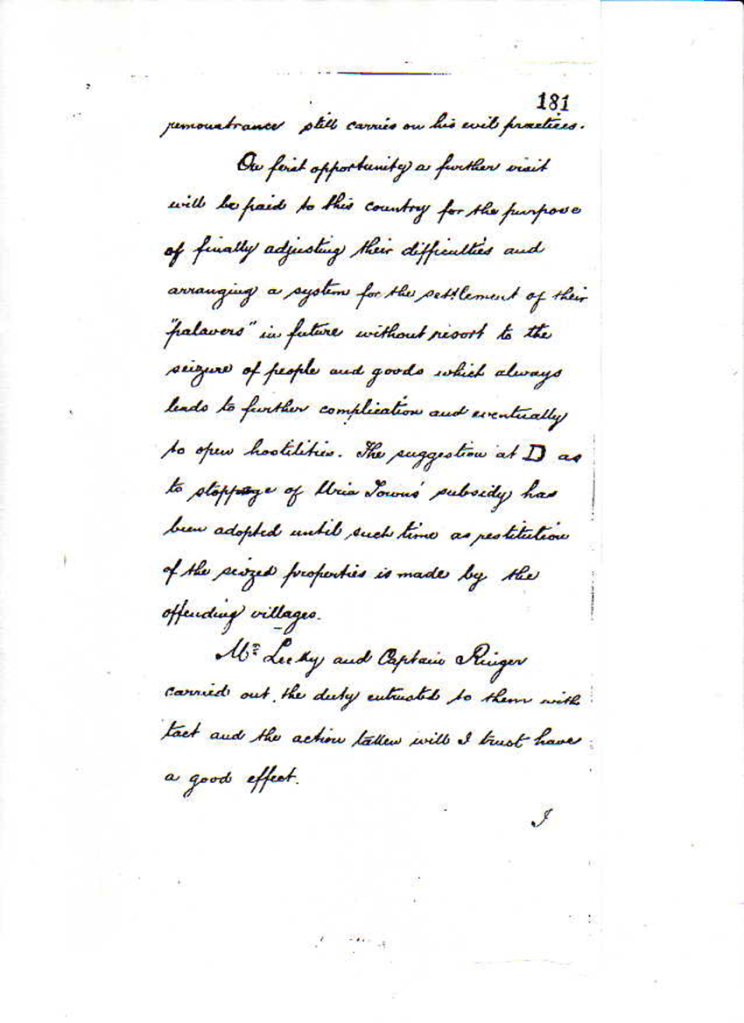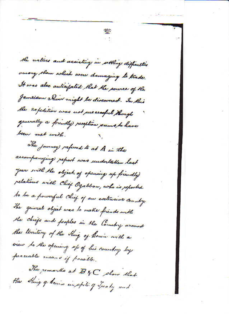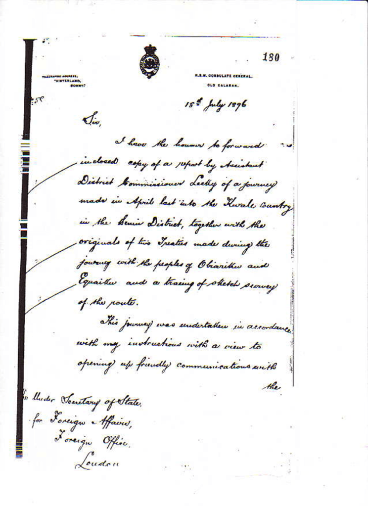 SIR ROGER MOOR’S LETTER TO FOREIGN OFFICE EXPLAINING THE PURPOSE AND ACHIEVEMENTS OF HUGH LEEKY’S AND CAPTAIN RINGER’S JOURNEY INTO UKWUANI COUNTRY, NORTH OF URHOBO COUNTRY