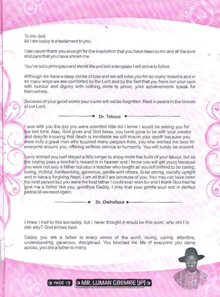 Tributes by Family Members and Others to
