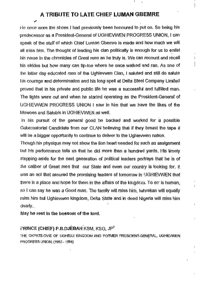 RETURN TO GBEMRE FUNERAL SERVICES
