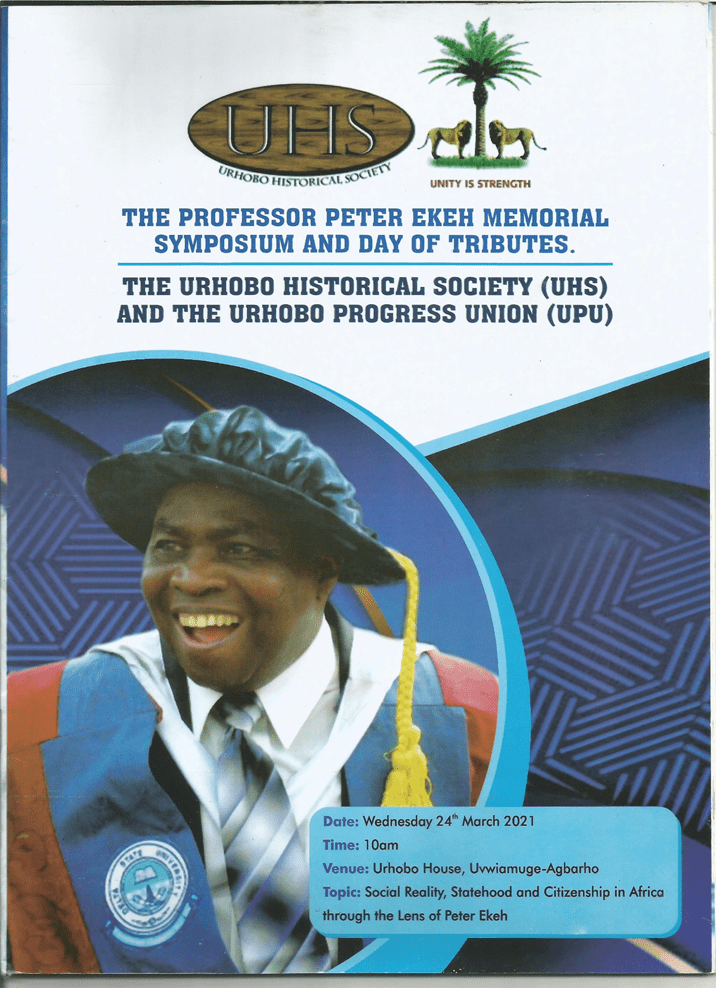 Professor Ekeh founded Urhobo Historical Society which is a veritable platform for Urhobo sons and daughters to re-discover themselves and their origin through research into Urhobo history and culture which Urhobo Historical Society espoused